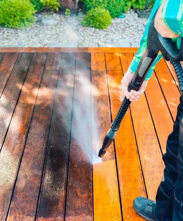 Yes, that’s one of the biggest reasons people call us. Our cleaning solution and deck cleaner are designed to loosen mold, algae, and built-up grime without harming your wood surface or composite deck. We might gently scrub certain areas before we power wash to help the detergent work better. After the spray, the deck looks brighter, cleaner, and ready for stain, paint, or sealer once it’s had time to dry completely.